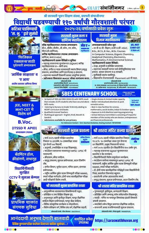 Sri Saraswati Bhuvan Prashala, Ranjani was established in 1955 with the aim of providing quality education in the Marathi language to students from rural areas. The school serves students from 25 surrounding villages, offering a nurturing environment focused on their overall development through educational, sports, cultural, and co-curricular activities.